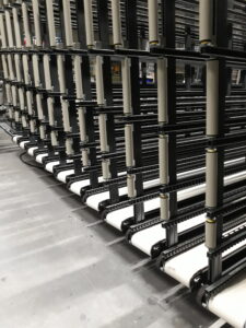 O armazém vertical 001MA da Graf Synergy foi projetado para eliminar a movimentação manual dos itens e criar um buffer estratégico entre as fases produtivas. Graças ao movimento induzido, cada compartimento pode ser movimentado diretamente pelo shuttle através de acoplamento mecânico, permitindo um deslizamento fluido e controlado dos painéis.