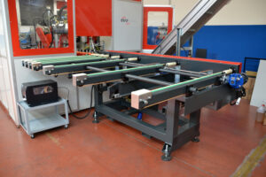 - Mesa de descarregamento motorizada com saída do lado oposto