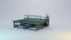 A movimentação das peças ocorre em uma ampla superfície equipada com escovas antirrisco e correntes motorizadas, que também protegem os perfis mais delicados contra arranhões e danos.